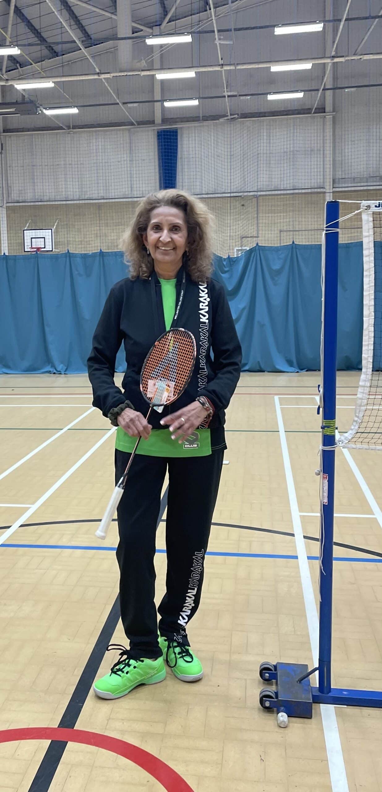 - Supportive indoor sports shoes (ideally badminton/squash shoes)