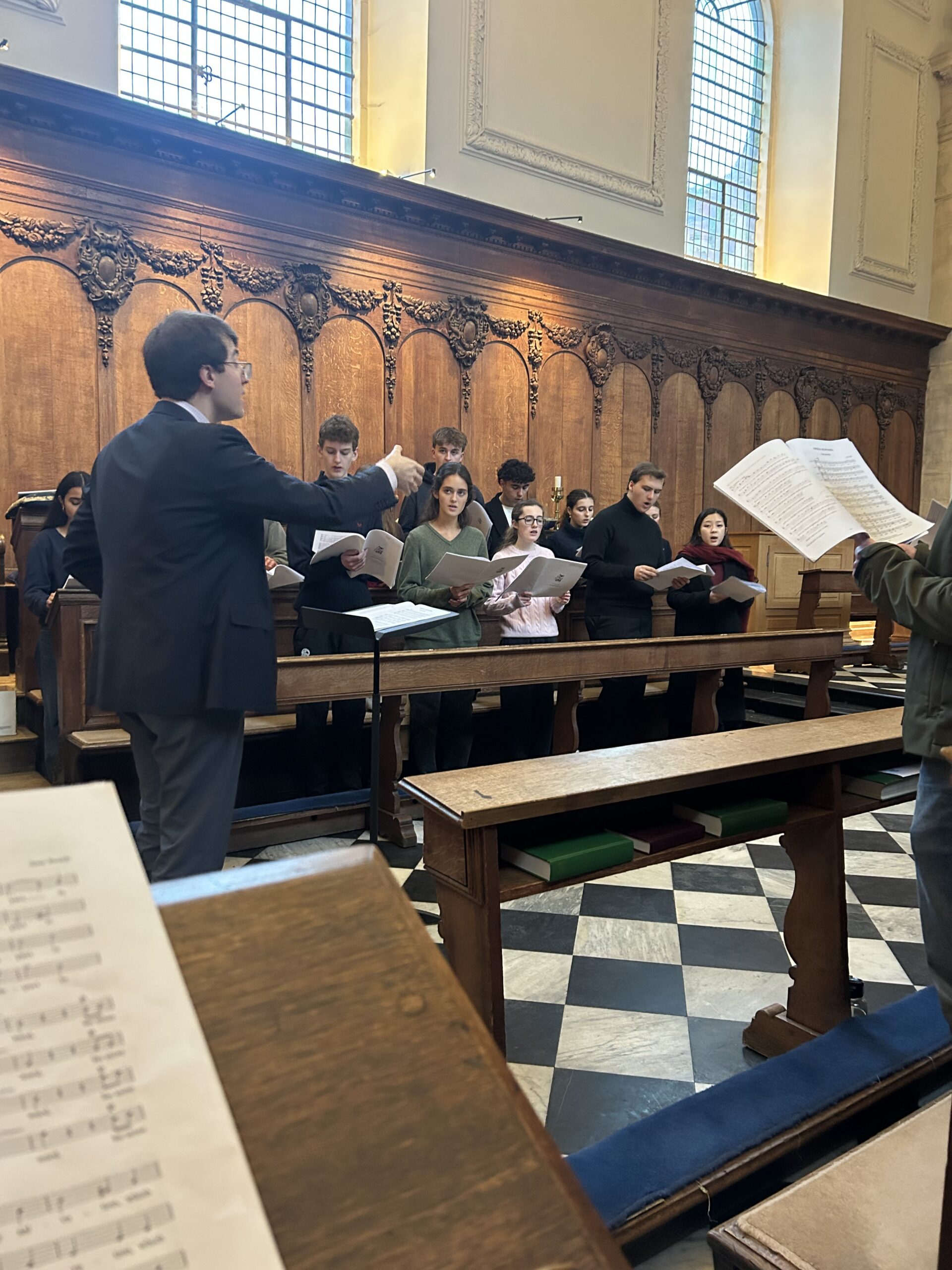 We absolutely loved the masterclass with Steven Grahl at Trinity College, Cambridge. We worked on Rachmaninov’s Bogoroditse Devo and Tallis’ If Ye Love Me, and left sounding so much better in preparation for our Evensong service at Pembroke College that afternoon. We really enjoyed singing in such an amazing venue, and it was interesting to learn more about the many choral opportunities available at the university.