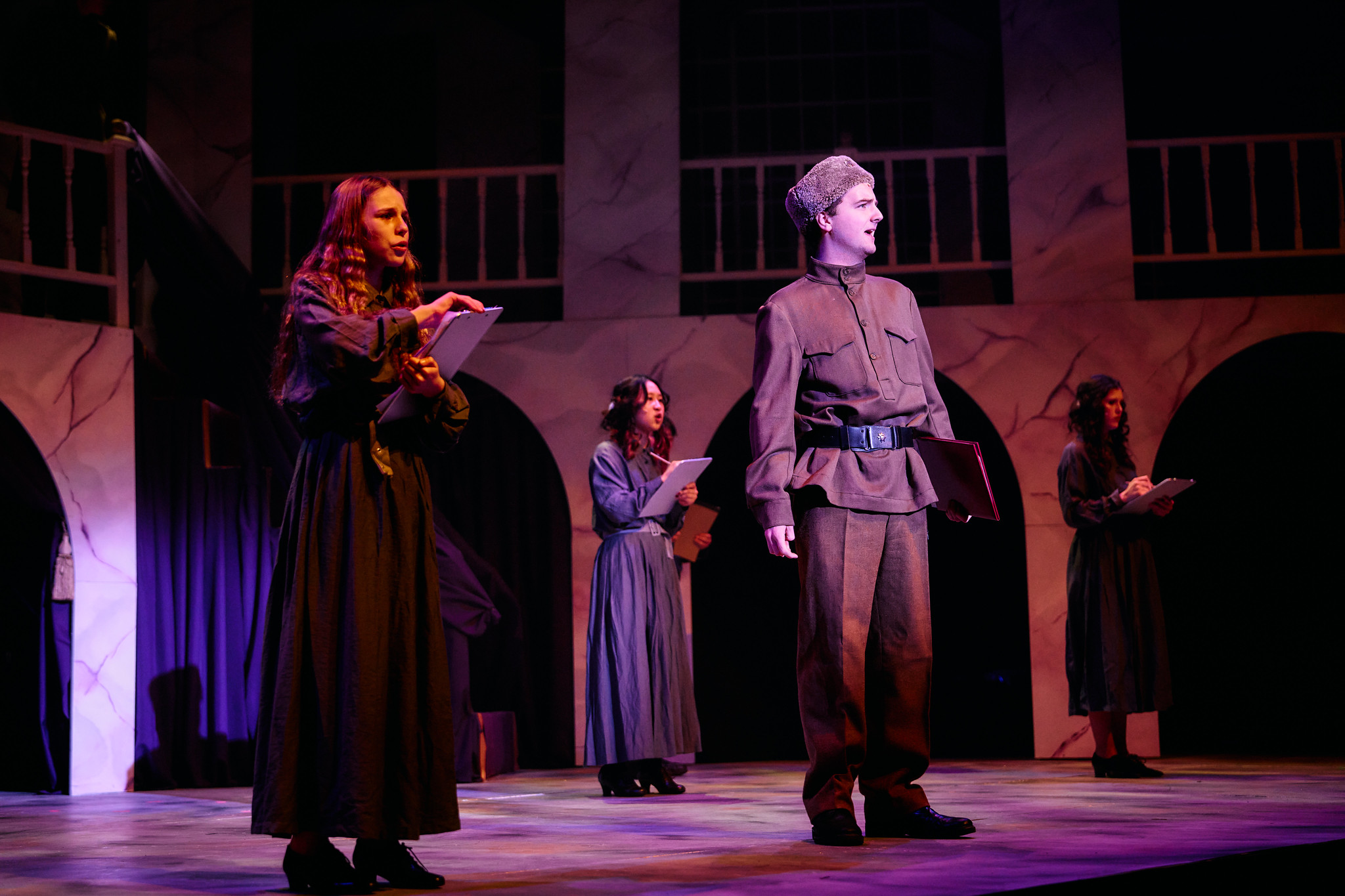 “This is such a magical show that brings light to a dark period of history. We really leaned into that sense of enchantment through the design elements and the acting. The two opposite worlds of Soviet Russia and 1920s Paris come to life with their own colour palettes and acting styles. Our cast, wearing their incredibly detailed costumes, work so hard to world-build and tell the story, creating a richly atmospheric and truly captivating piece of theatre.”