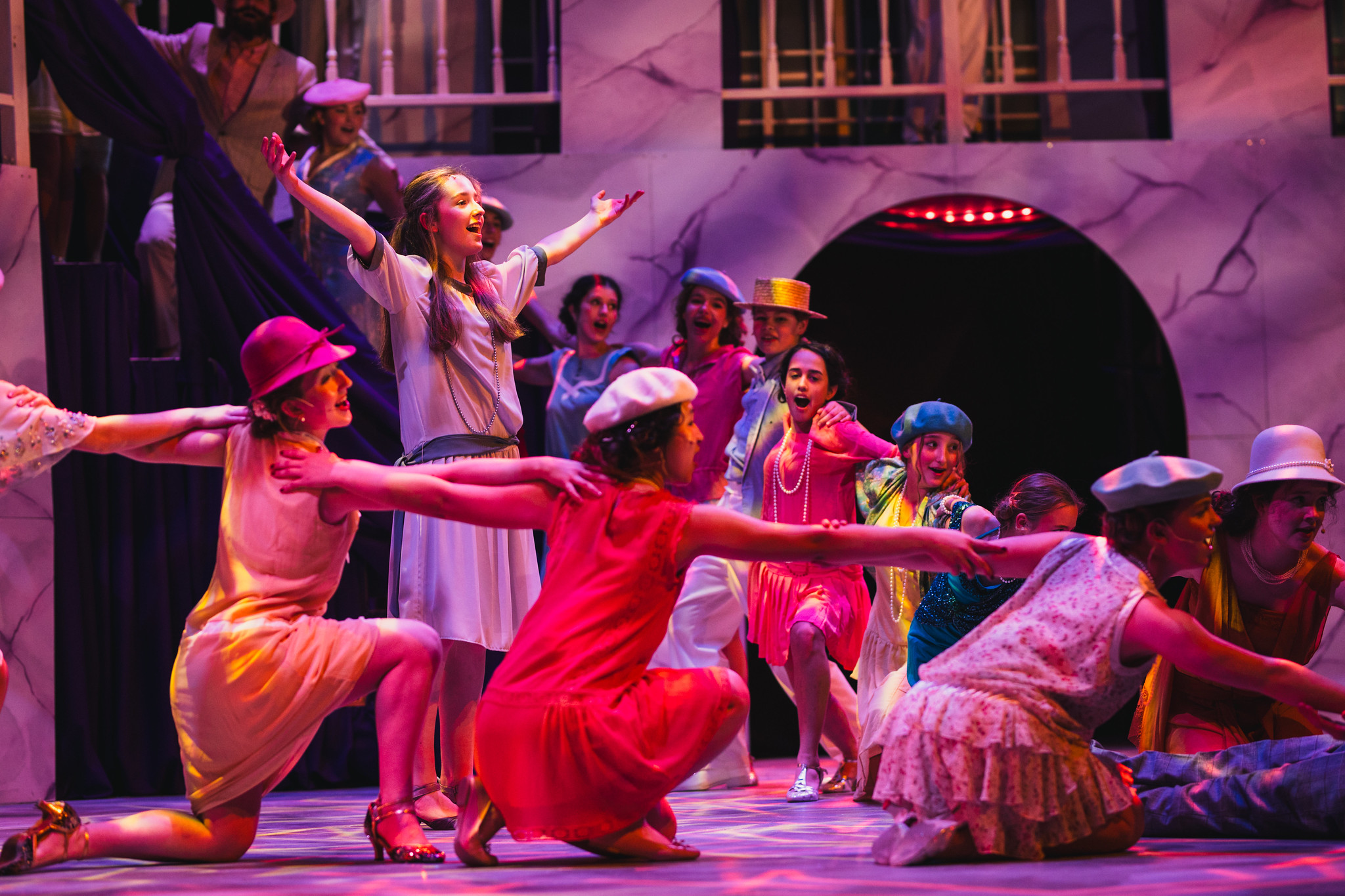 From the moment the curtain rose, it was clear this production would be something special. The GWA had been transformed into a palace fit for royalty, with cascading staircases and atmospheric staging that seamlessly shifted from grandeur to revolutionary unrest and the elegance of 1920s Paris. The ghostly presence of Anastasia’s family added a poignant theatrical motif, with their haunting appearances throughout the show reinforcing its exploration of memory and loss.
